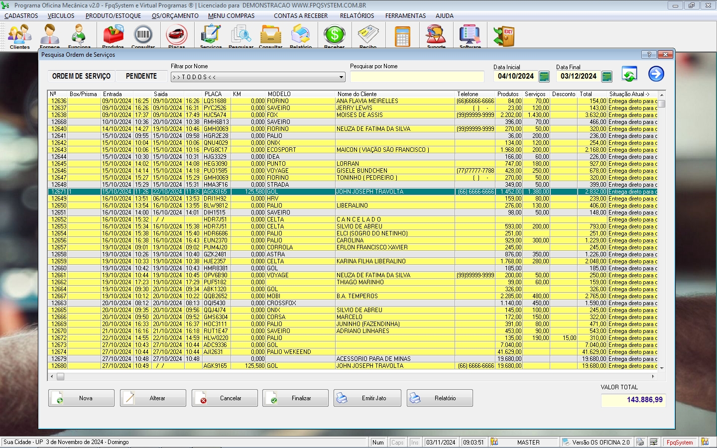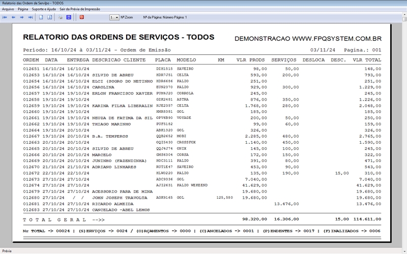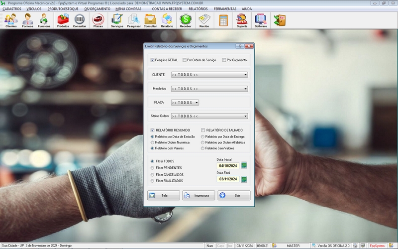 - Relatório das OS realizadas por: MECANICO / CLIENTE / STATUS