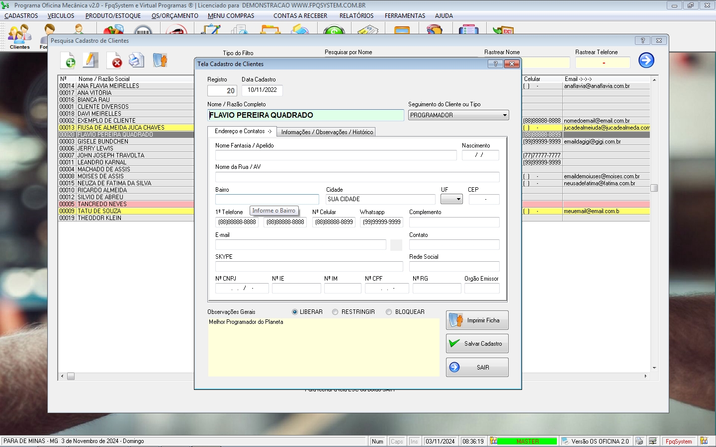 - Pode cadastar o cliente no momento da OS