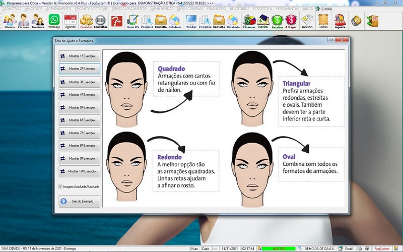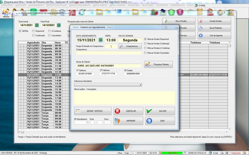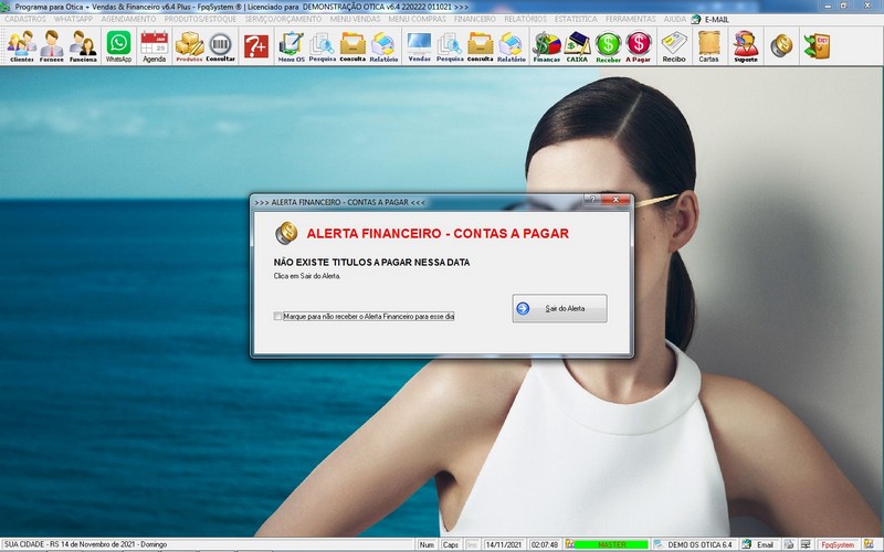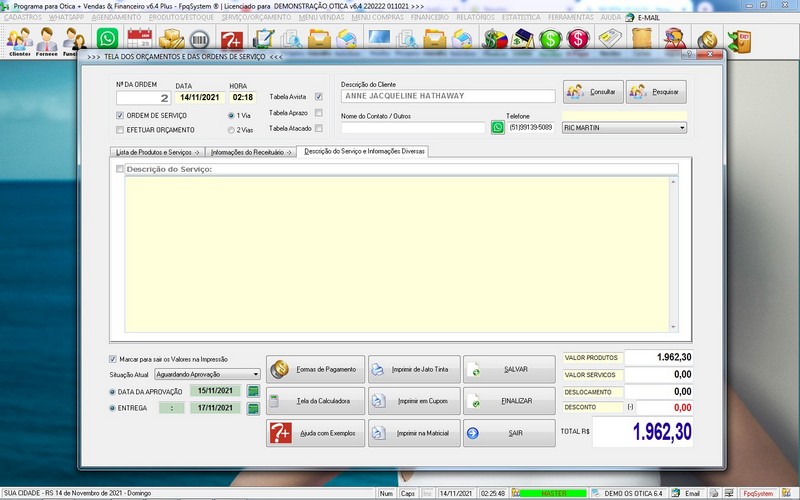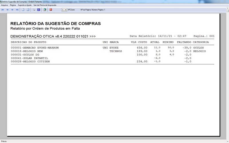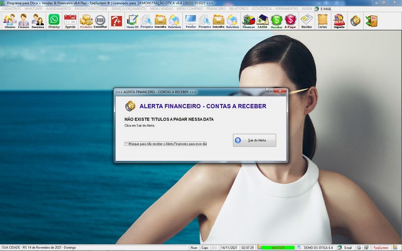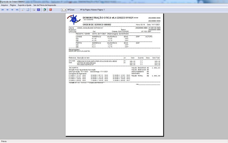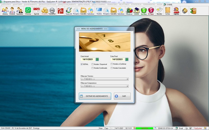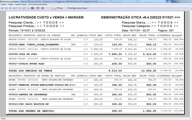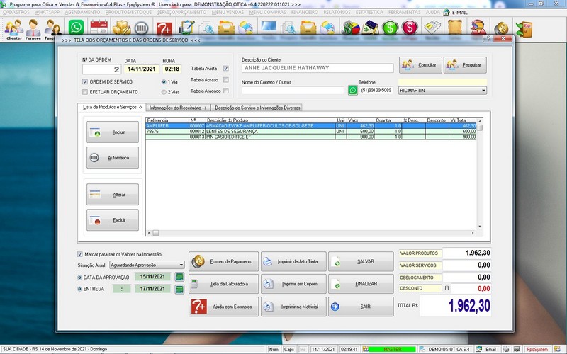 para Ótica e Relojoalheria, Serviços, Vendas, Financeiro e Estatística