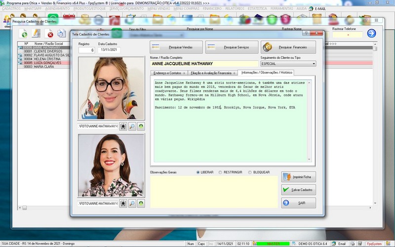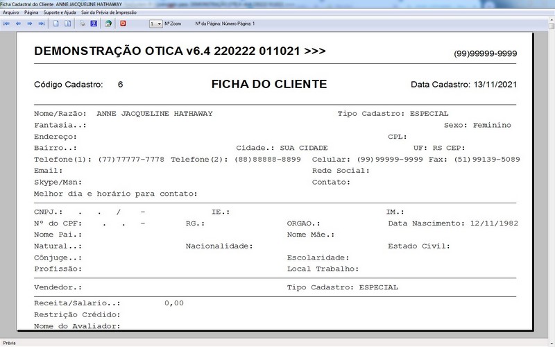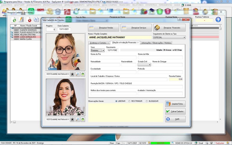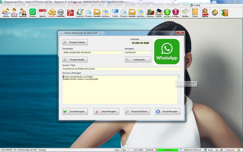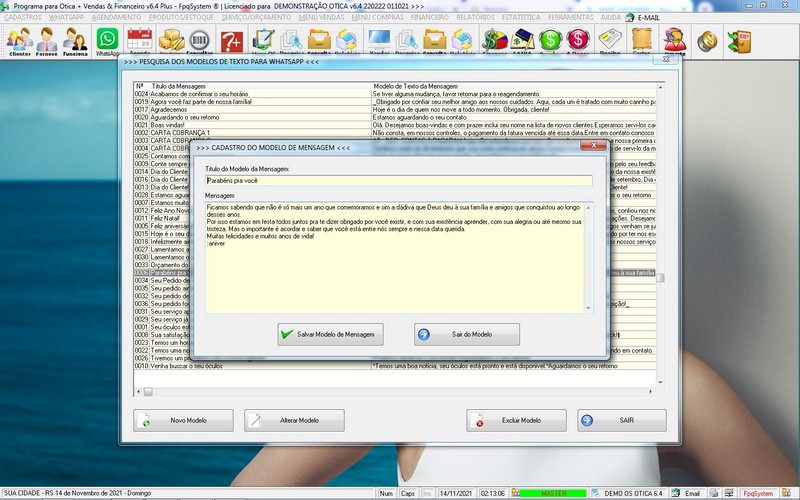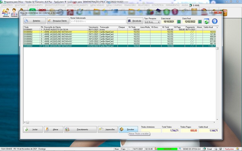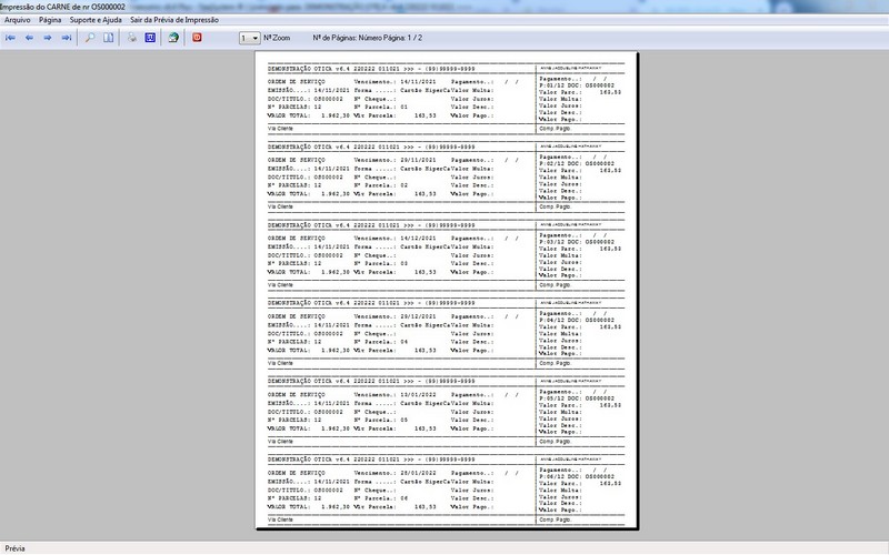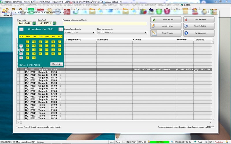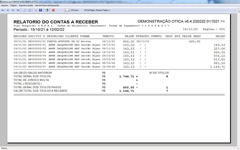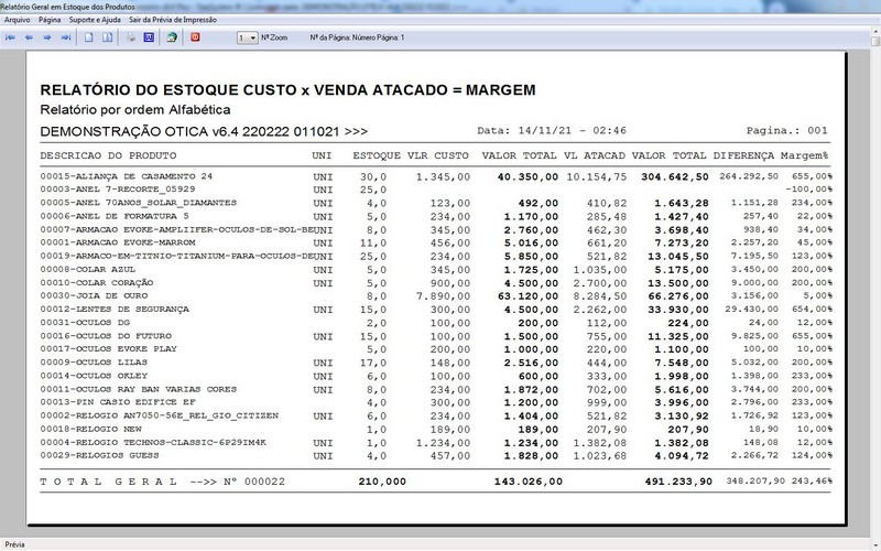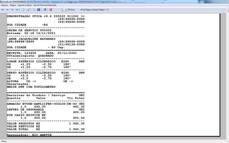 para Ótica e Relojoalheria, Serviços, Vendas, Financeiro e Estatística