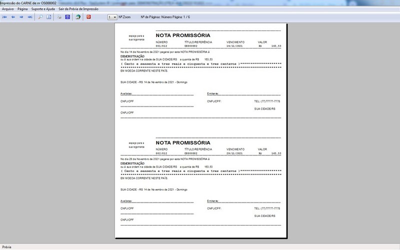 Relatório de Vendas / Reajuste de Preços em Bloco / Recibo de Pagamento