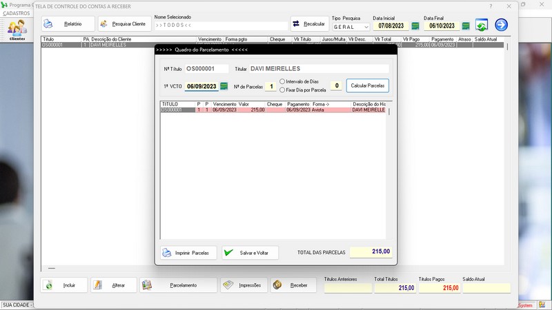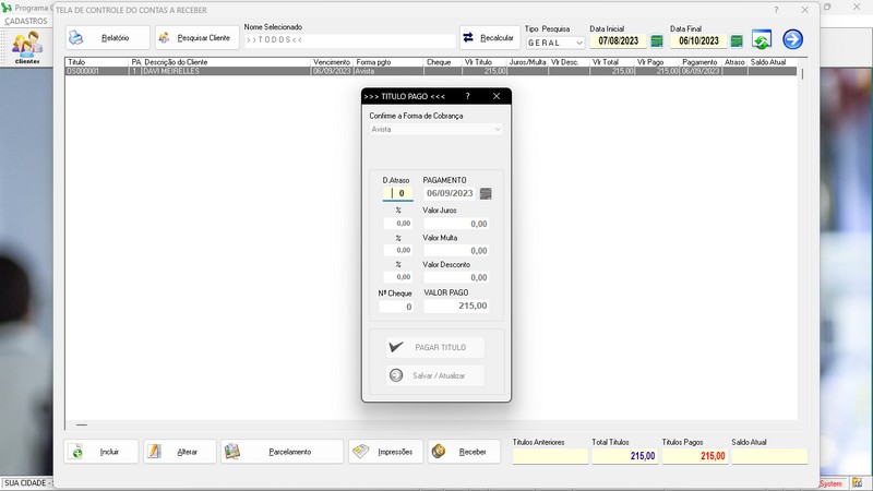 / Contas a Receber / Recibo de Pagamento / Acesso por nivel de usuário.