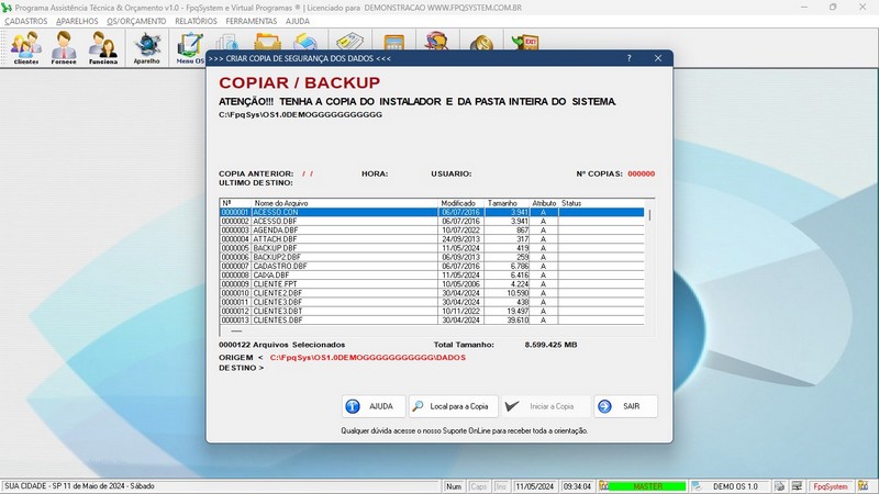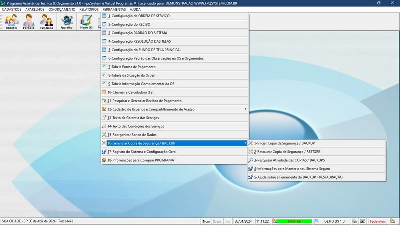 - Opção de Backup do Programa