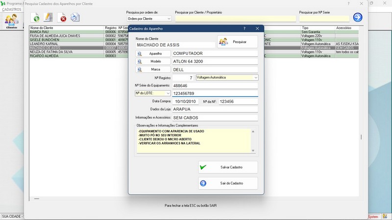 * Cadastro de Equipamentos
