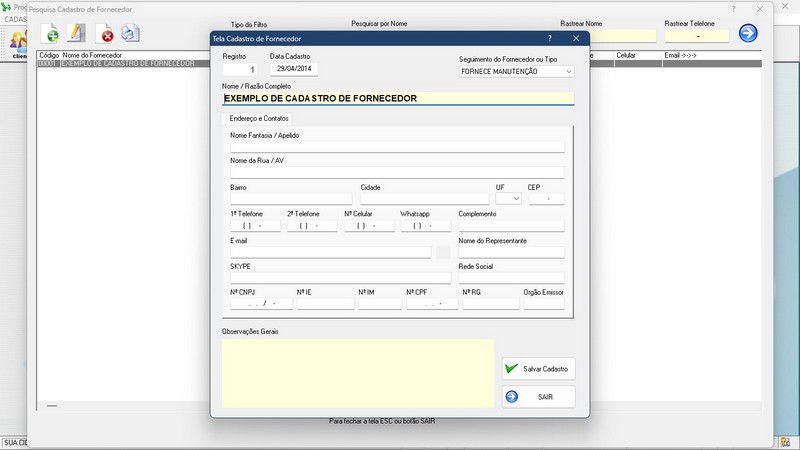 * Cadastro de Fornecedor