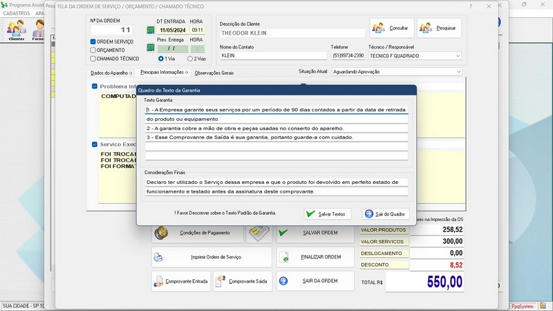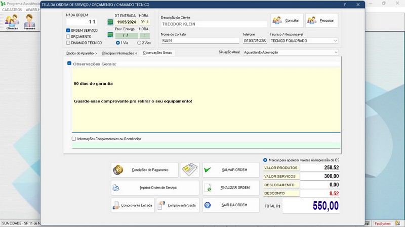 * Ordem de Serviço