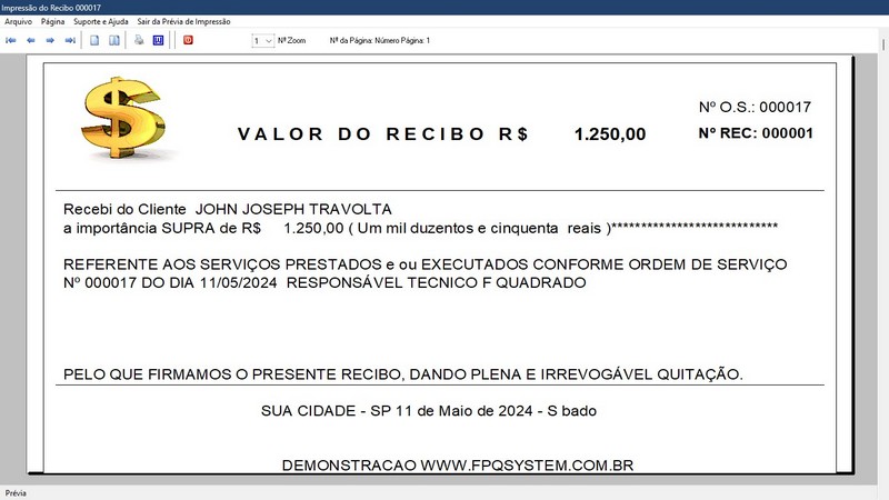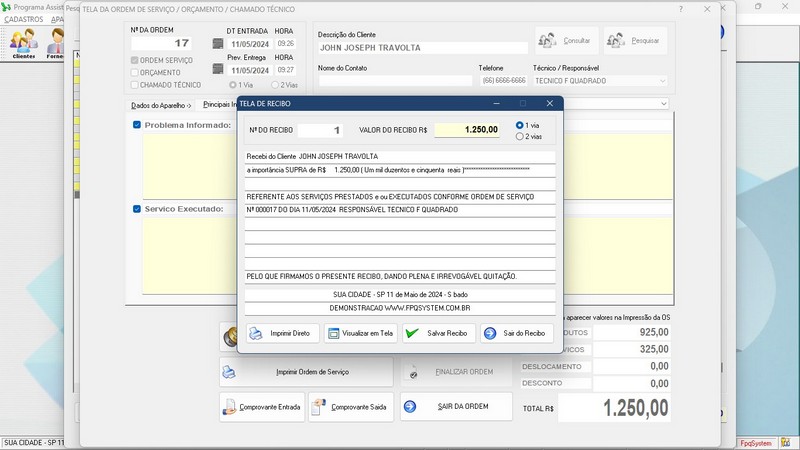 de OS / Relatório de Orçamentos / Personalizar Fundo de Tela / Recibo