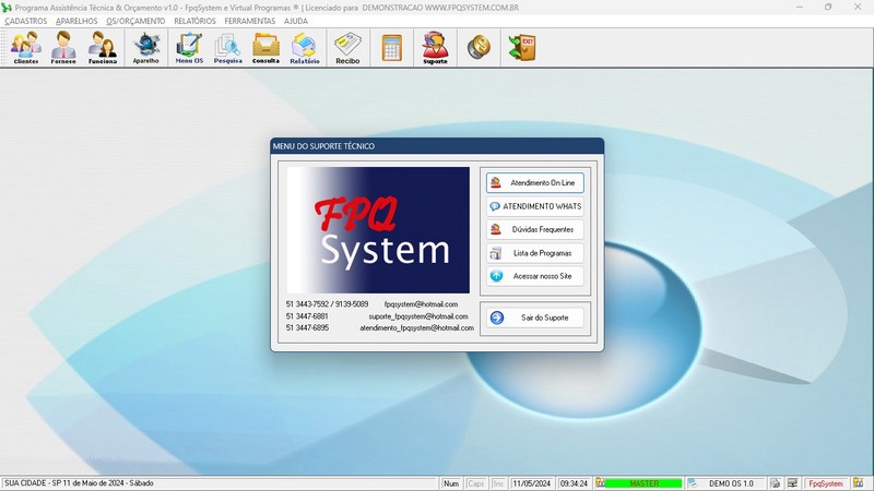 - Suporte e Atendimento OnLine via site ou menu ajuda do programa