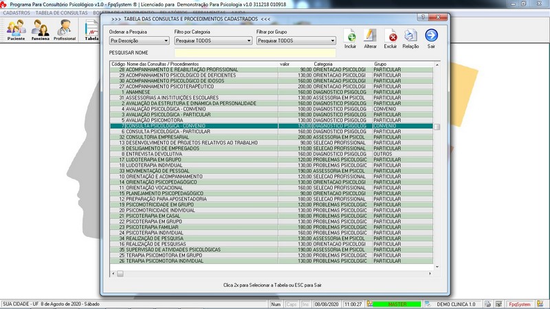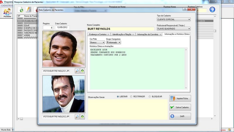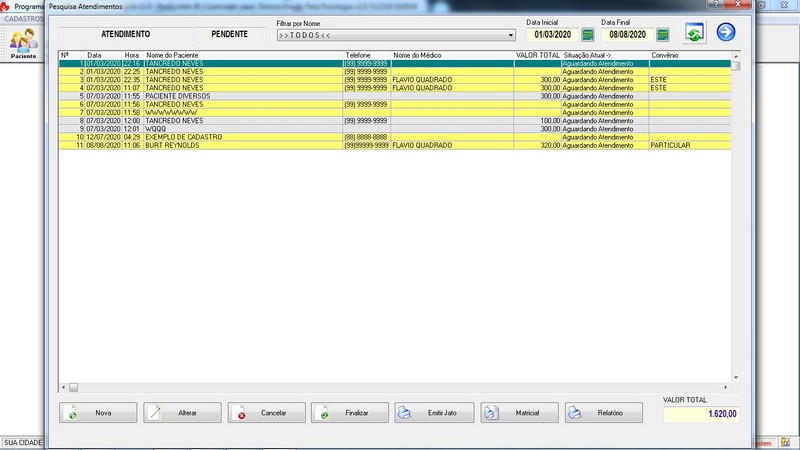 de Atendimento / Paciente / Profissional / Ficha de Paciente / Tabela