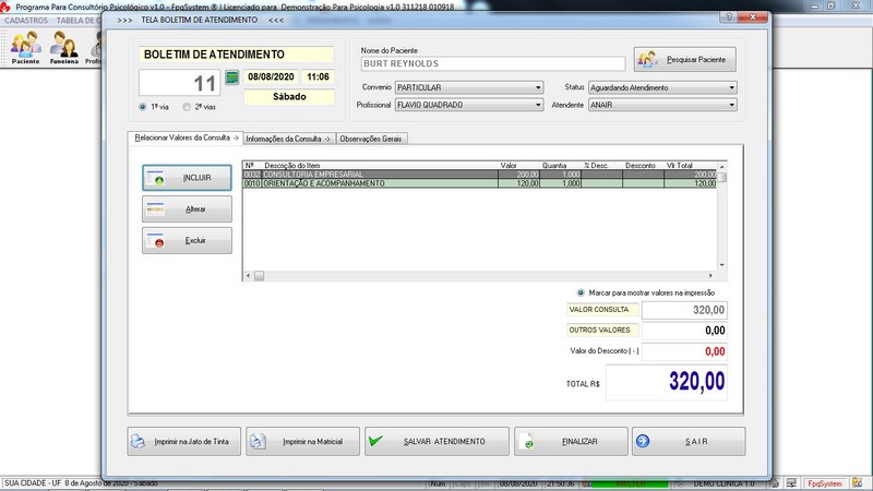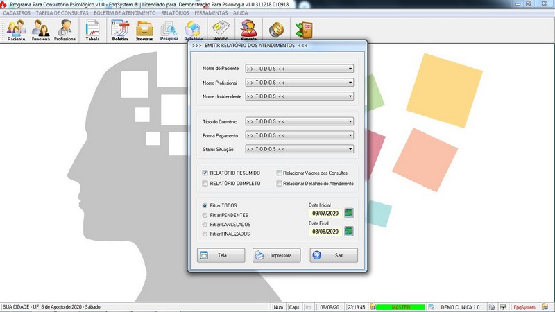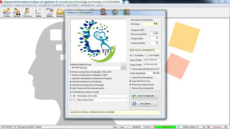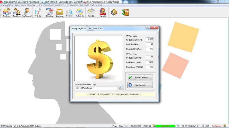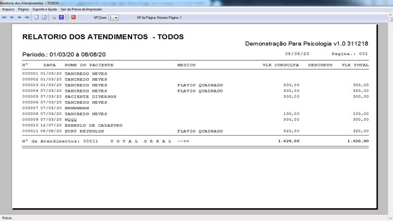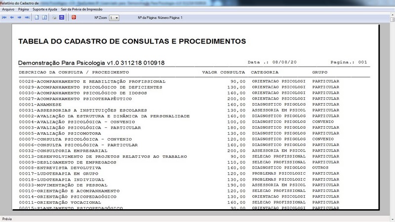 Preço / Recibo de Pagamento / Relatórios de Atendimentos / Personalizar
