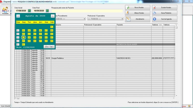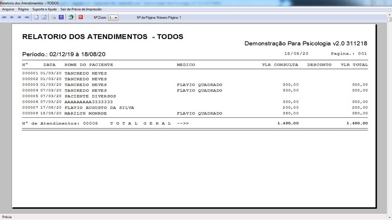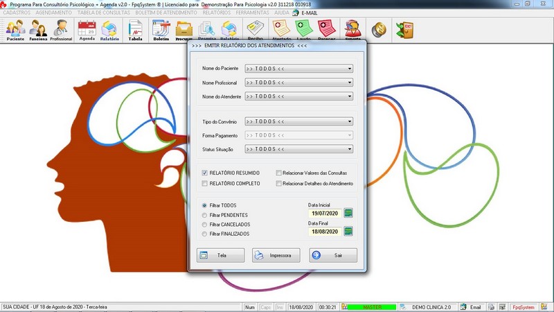 Relatórios de Atendimentos / Agendamento / Atestado / Laudo / Parecer /