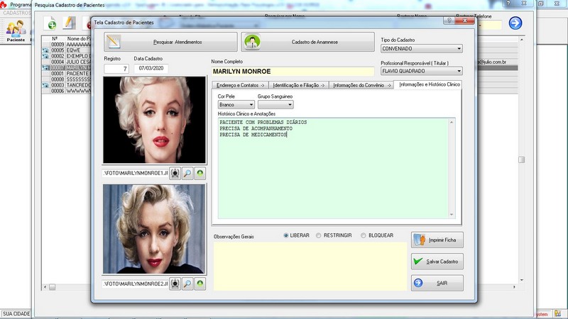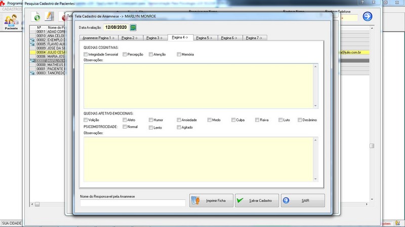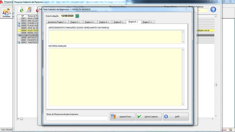 Anamnese / Profissional / Ficha de Paciente / Tabela de Preço / Recibo