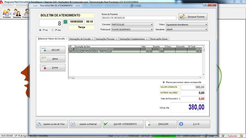 Gerenciar Consultório Psicológico v2.0 Controle de Atendimento / Paciente /