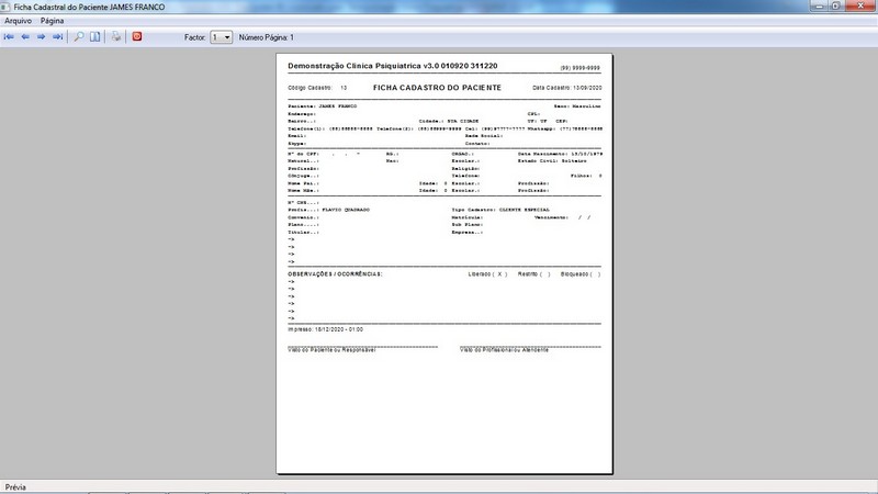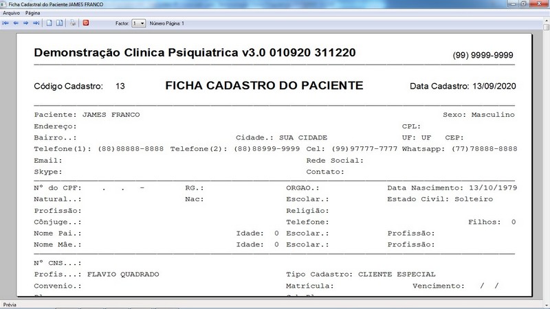 de Atendimento / Paciente / Anamnese / Profissional / Ficha de Paciente