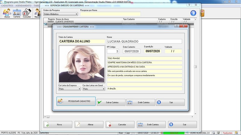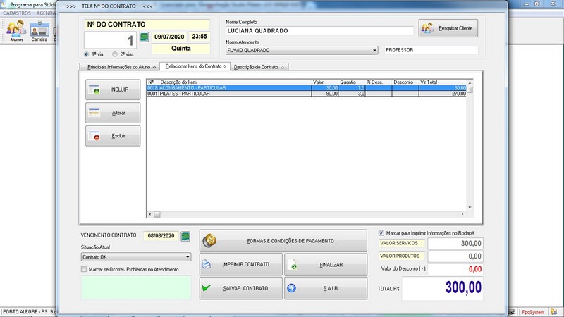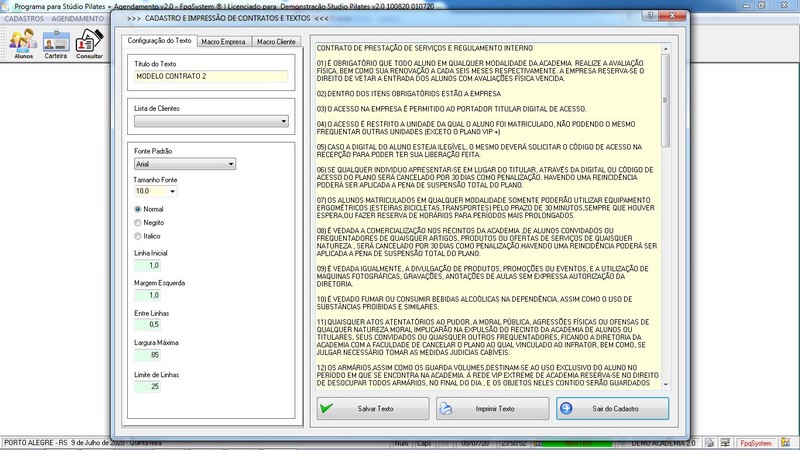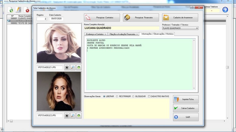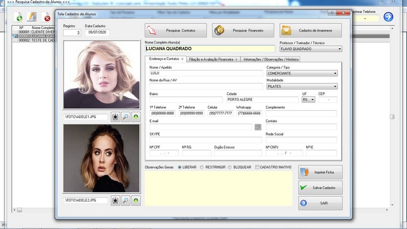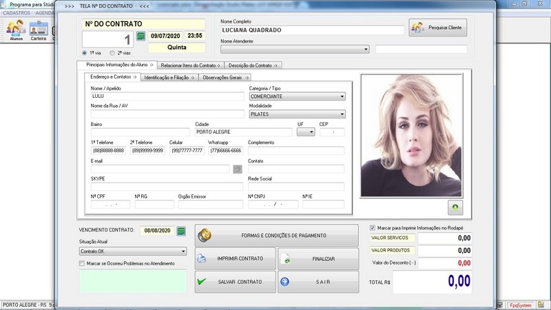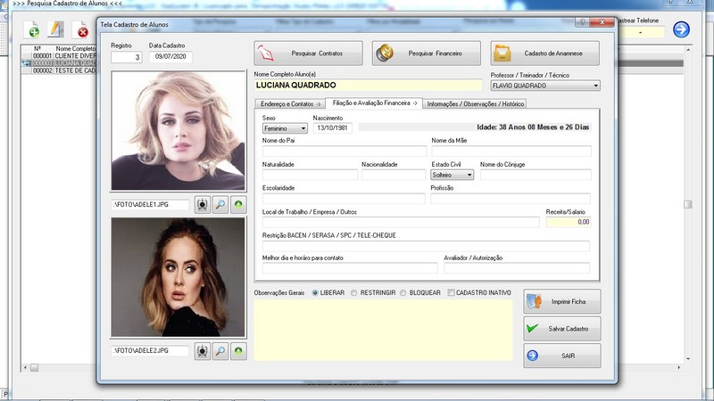 Contratos / Cadastro de Alunos com foto / Cadastro de Anamnese /