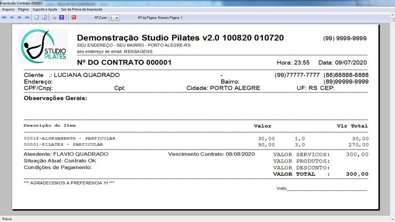Atendentes / Agendamento / Relatório dos Contratos / Modelo de