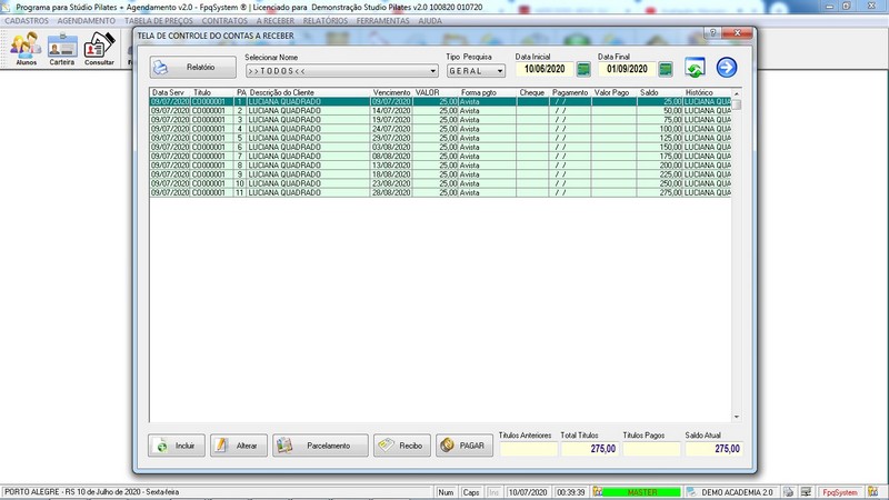 Contratos / Aniversariantes / Tabela de Preço / Contas a Receber /