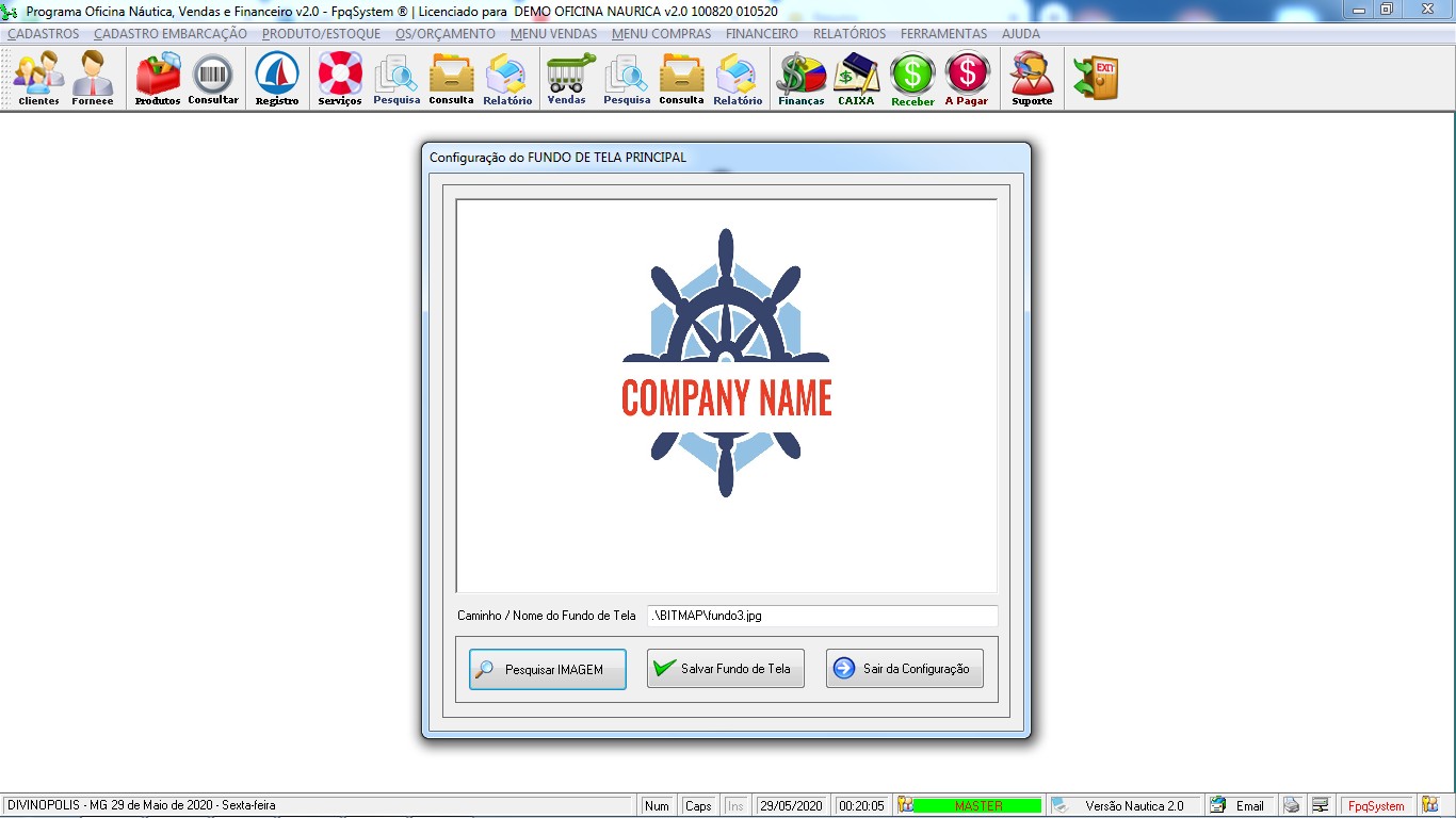 Cadastro de Embarcação / Personalizar logomarca / Personalizar Fundo