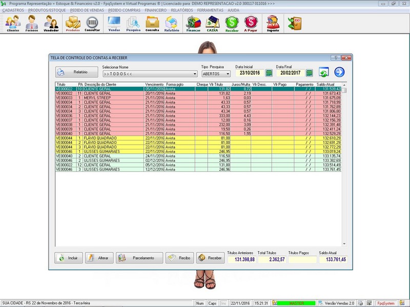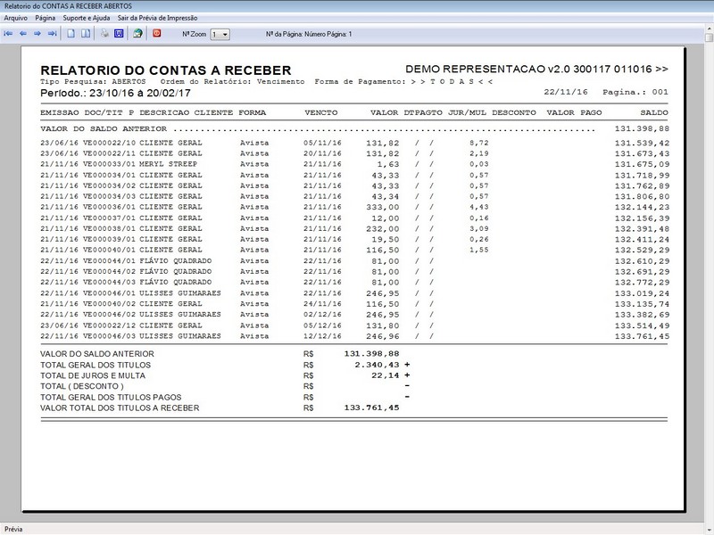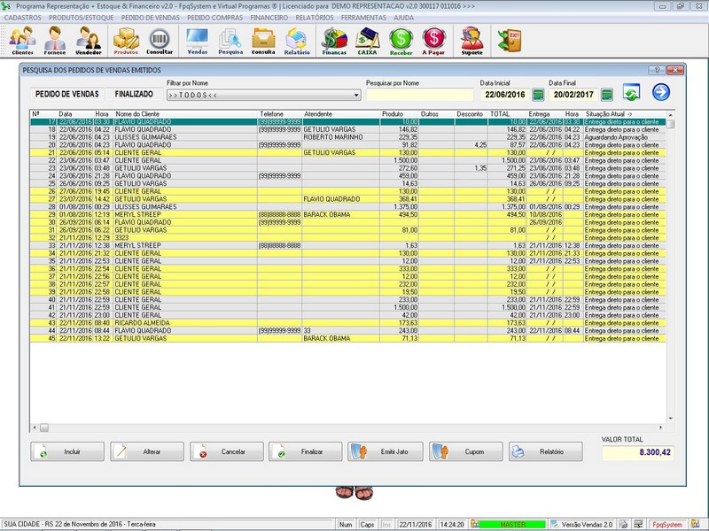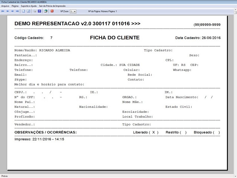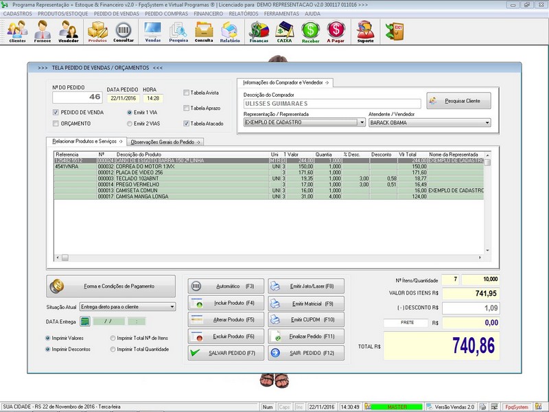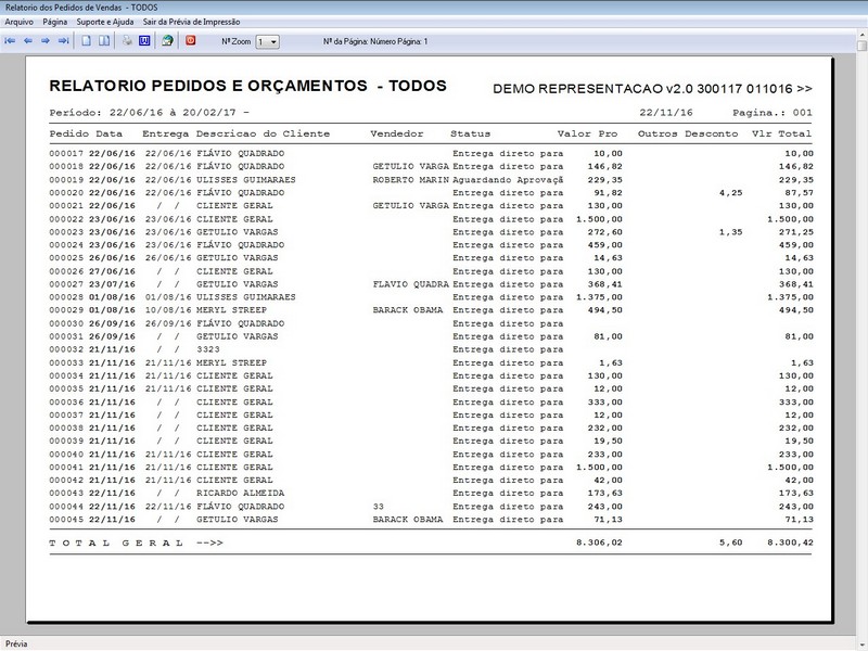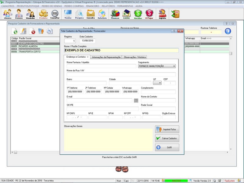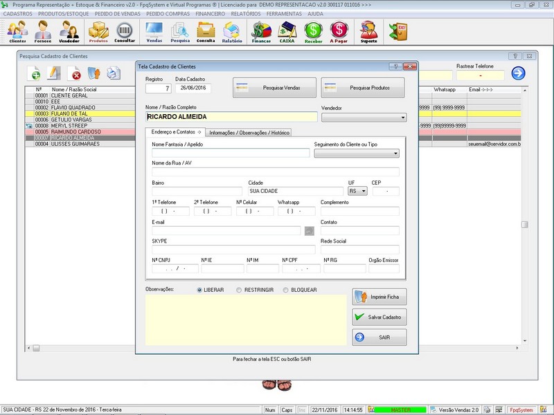 Orçamento / Clientes / Fornecedores / Representadas / Vendedores /