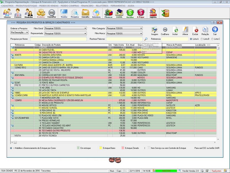 Tela Cadastro & Pesquisa de Produtos & Estoque