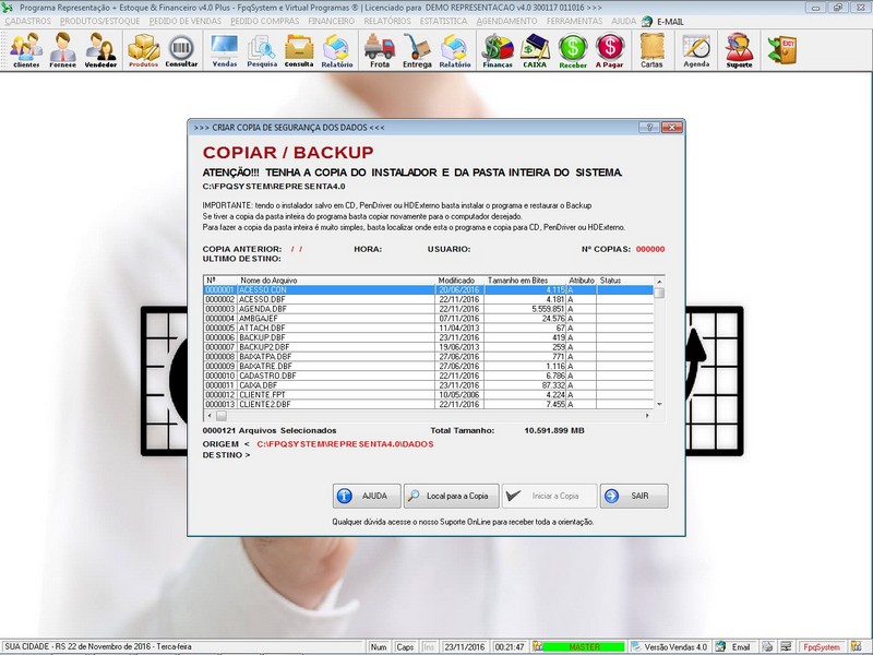 - Opção de Backup do Programa