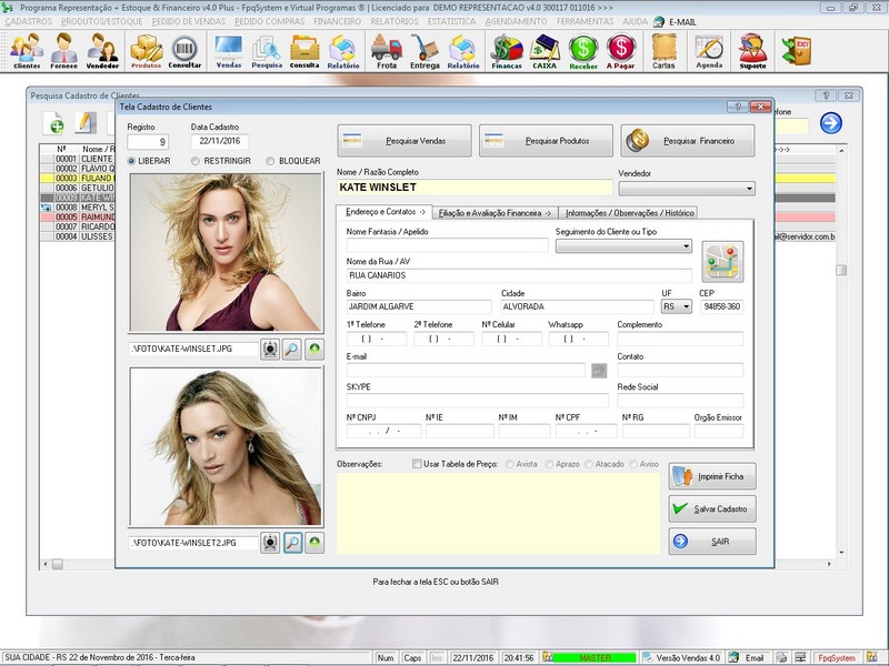 Orçamento / Clientes / Fornecedores / Representadas / Vendedores /