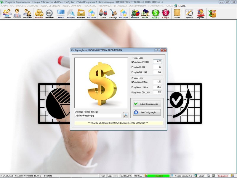 - Você mesmo configura a logomarca no programa