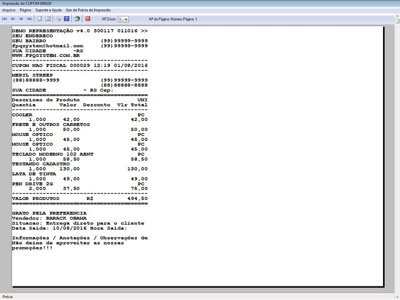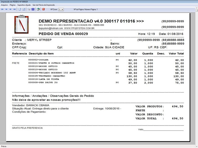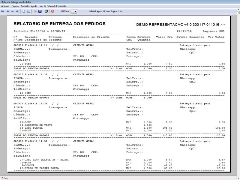 desconto / Controle de Comissão / Controle de Entrega / Recibo de