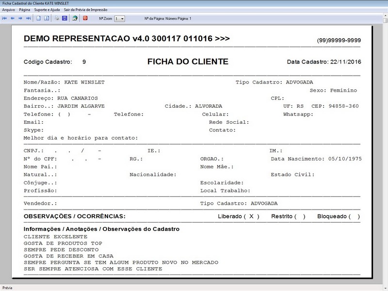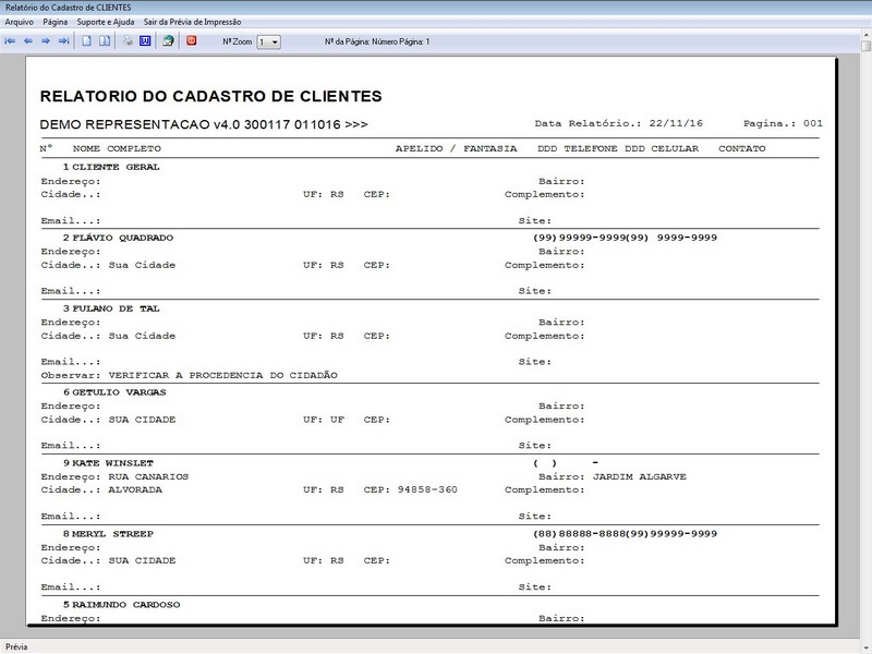 Programa para Gerenciar Representação,