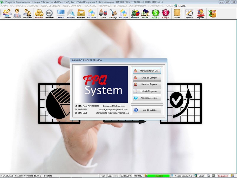 - Suporte e Atendimento OnLine via site ou menu ajuda do programa