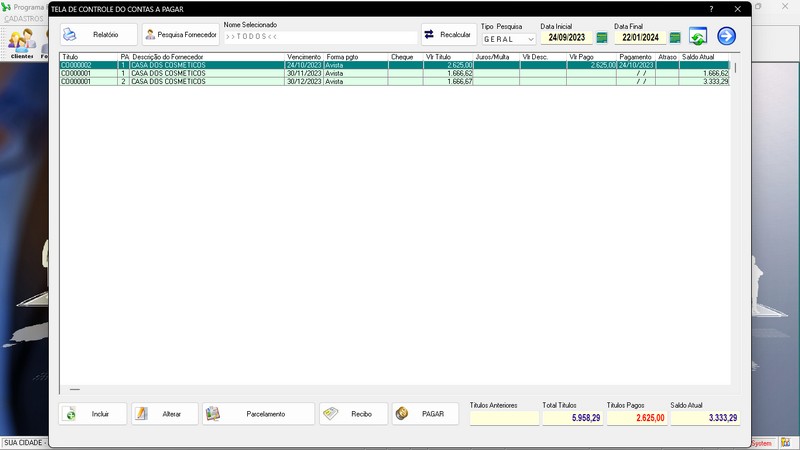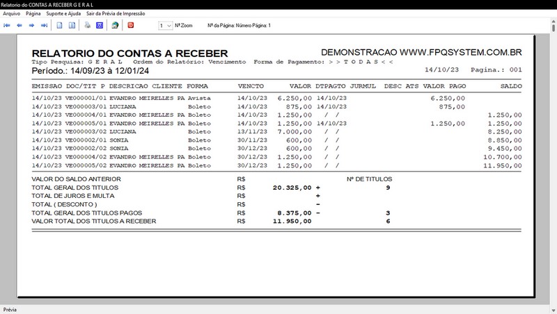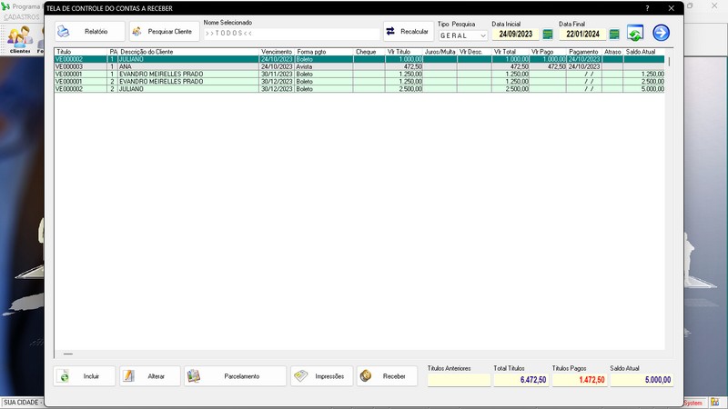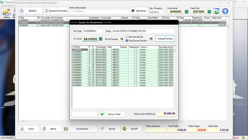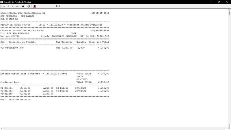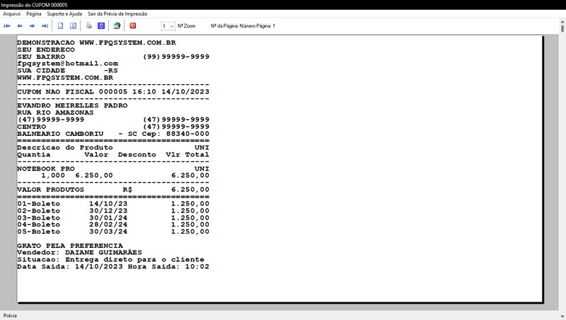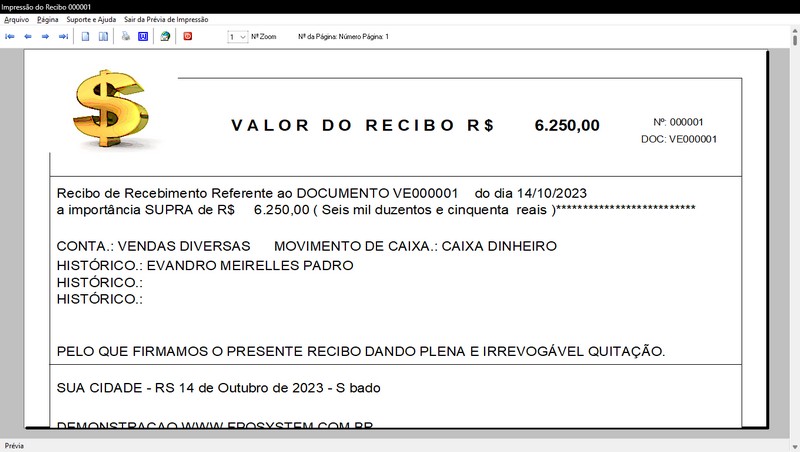 desconto / Controle de Comissão / Controle de Entrega / Recibo de