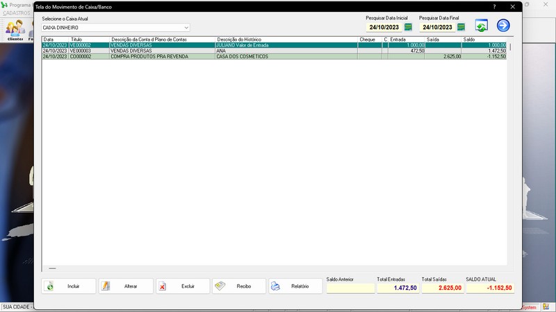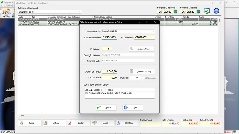 Tela pra Gerenciar Movimento de Caixa Limite de desconto