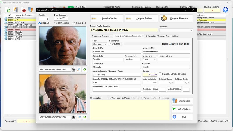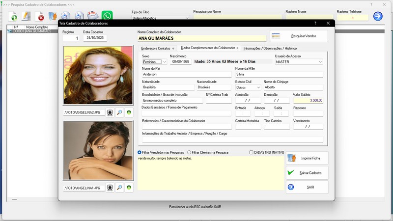 + Acesso por nivel de usuario + Compras + Financeiro + Foto nos