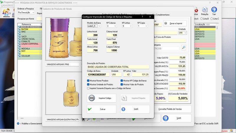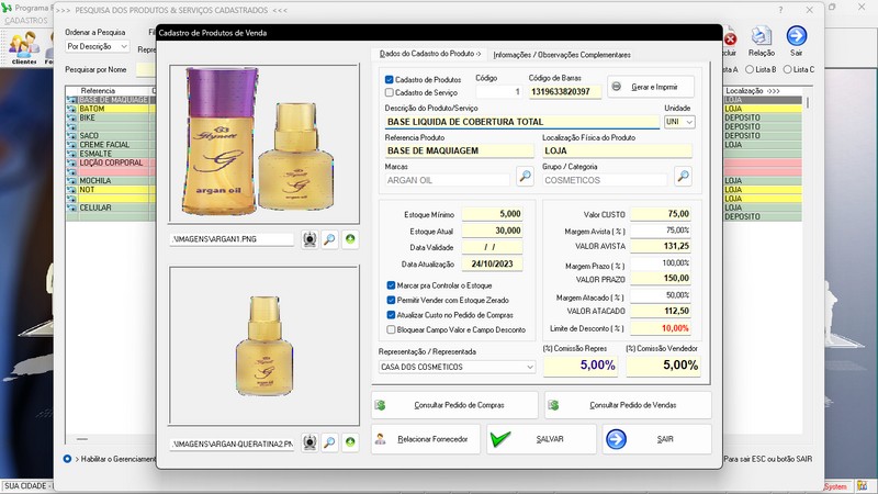 Produtos + Reajuste de Preços em bloco + Relatórios Estatisticos + Limite de
