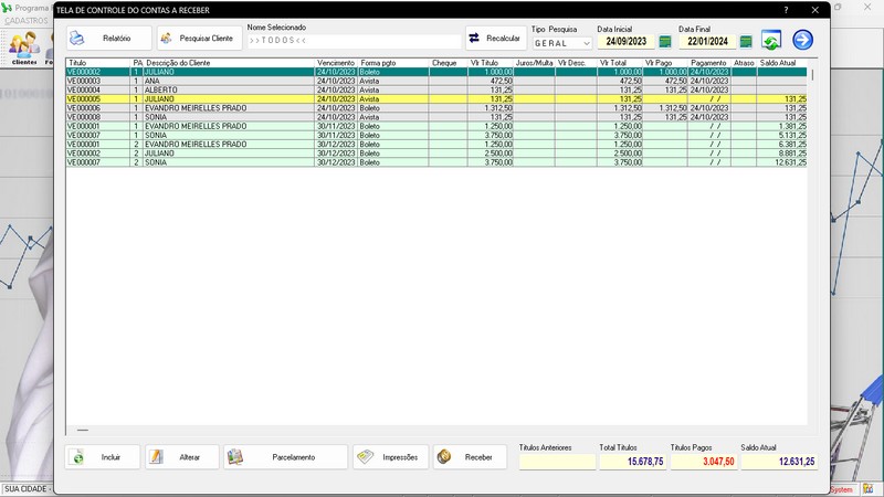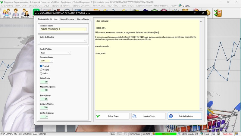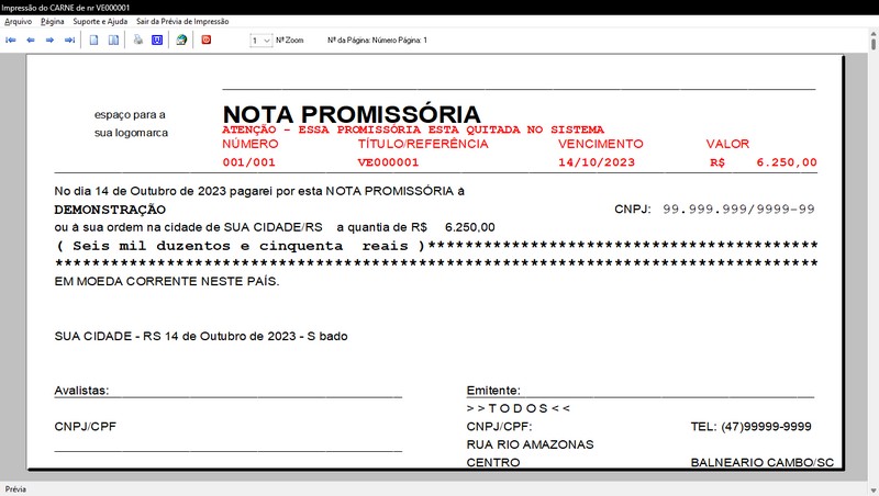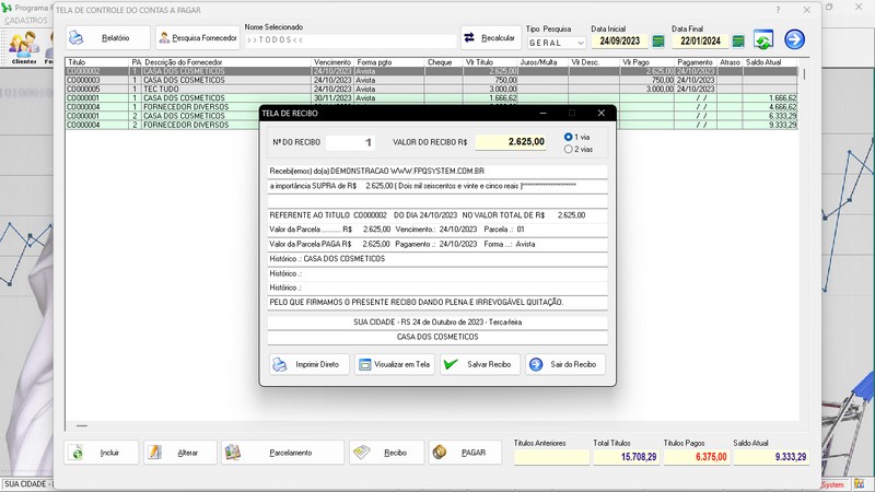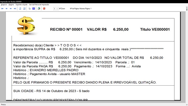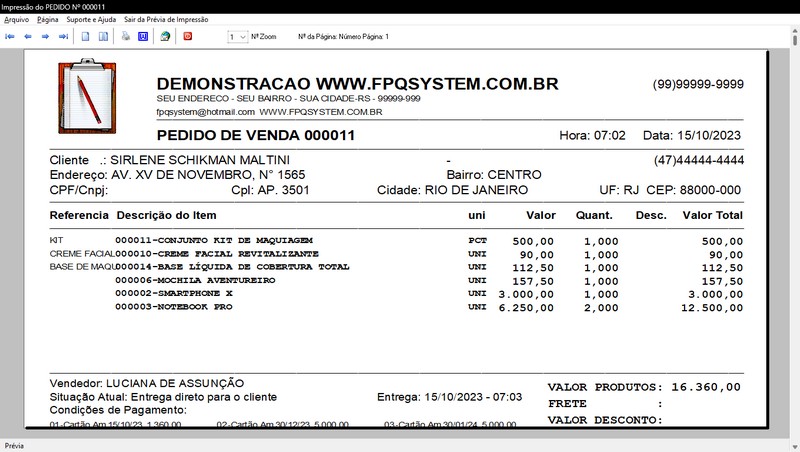 desconto / Controle de Comissão / Controle de Entrega / Recibo de