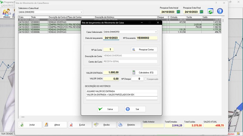 Tela pra Gerenciar Movimento de Caixa Limite de desconto