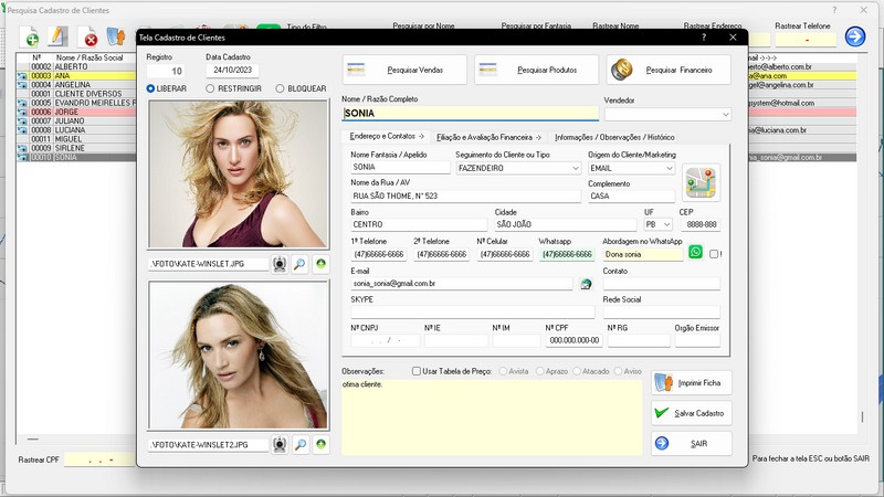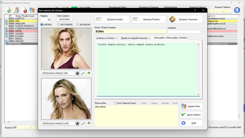 + Acesso por nivel de usuario + Compras + Financeiro + Foto nos