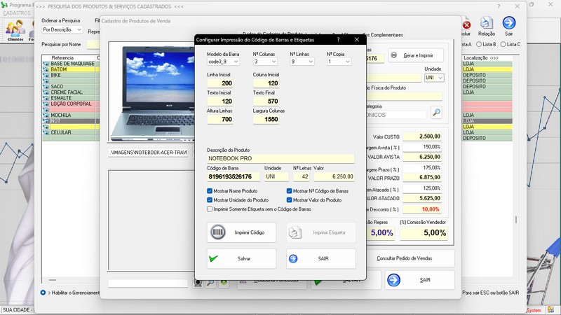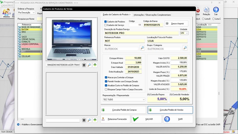 Produtos + Reajuste de Preços em bloco + Relatórios Estatisticos + Limite de