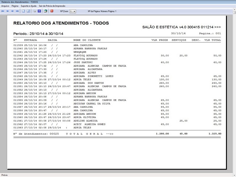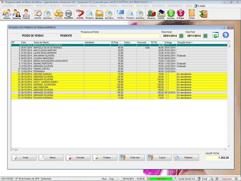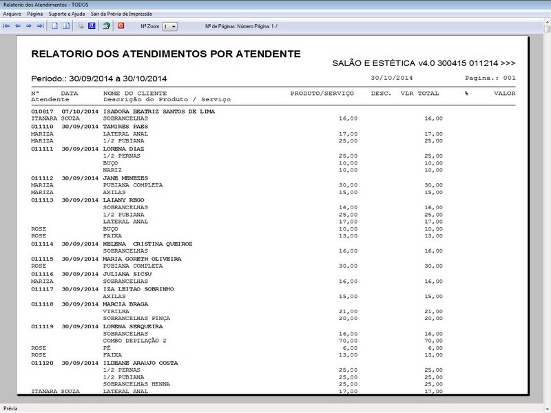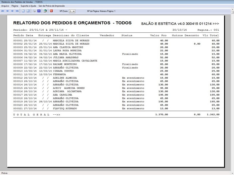 / Relatório dos Atendimentos / Relatório das Comissões / Vendas