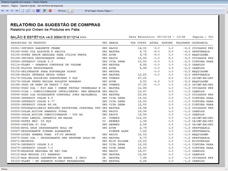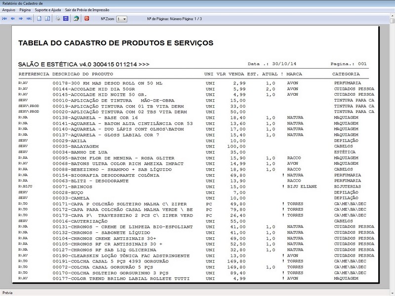 / % Comissão dos Serviços / Controle de Estoque / Acesso por Nivel