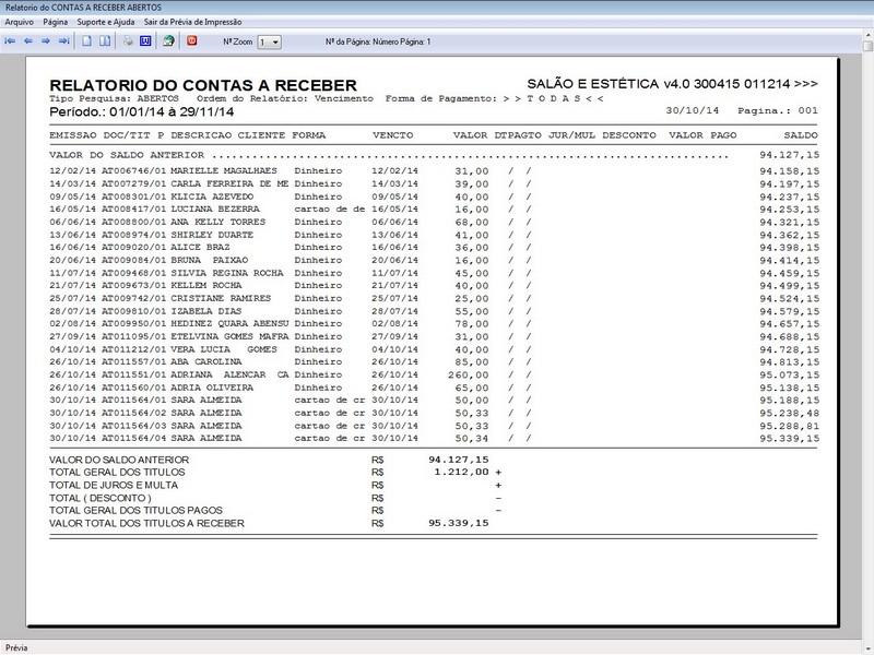 Contas Pagar / A Receber / Recibos de Pagamento / Relatório