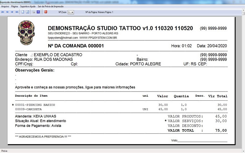 Studio Tattoo + Atendimento e Comanda v1.0 Atendimento