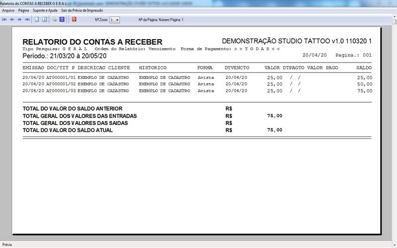 na impressão do Atendimento