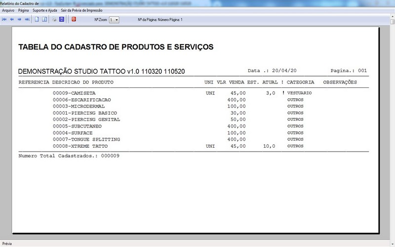 Relatório de Comissão / Cadastro de Produtos / Controle de Estoque /