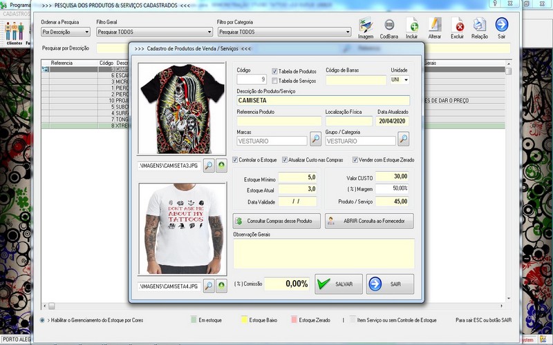 Balcão / Relatório de Vendas / Cadastro de Produtos / Foto nos Produtos