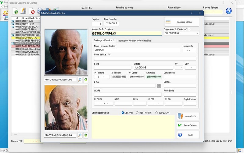 de contato, histórico de compras, termos de pagamento, etc.