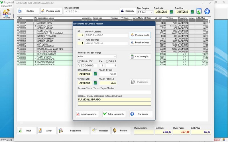 receber, pedido de compras, gerando contas a pagar, com fluxo de caixa