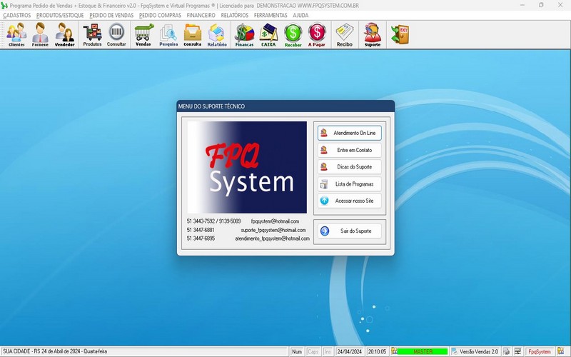 - Suporte e Atendimento OnLine via site ou menu ajuda do programa