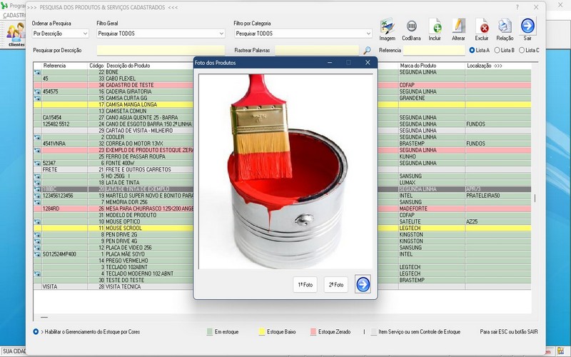 registro de todos os produtos disponíveis para venda,