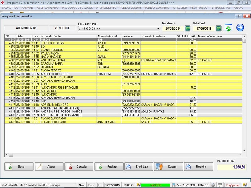 / Relatório dos Atendimentos / Relatório de Comissão / Vendas no